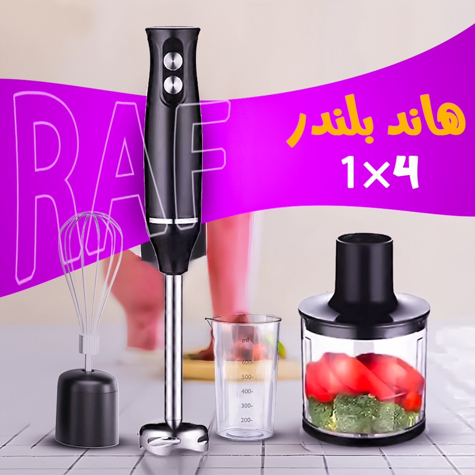– 💥 هاند بلندر 4 في 1 RAF ✨ هيبقى إيدك اليمين في المطبخ! 🍹🥑 خلط، طحن، فرم وهرس في ثواني وبمنتهى السهولة 💪🔥